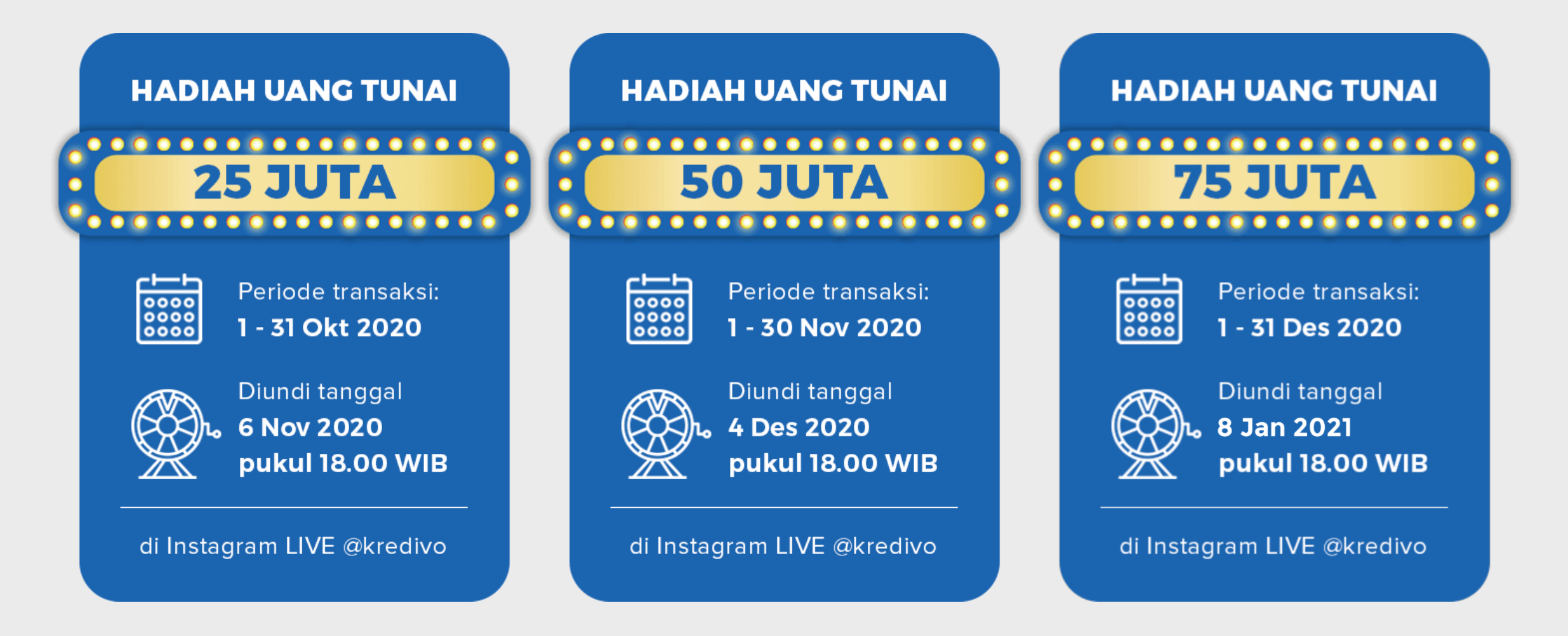 Hati-hati penipuan ya, Kredipal! Jika kamu punya pertanyaan mengenai undian ini, silakan hubungi customer service Kredivo di nomor telepon 0807-1-573348 atau email ke support@kredivo.com. Untuk informasi lebih detail mengenai kuis ini, silakan kunjungi https://www.kredivo.id/nabok-duit/ dan follow Instagram resmi @kredivo.