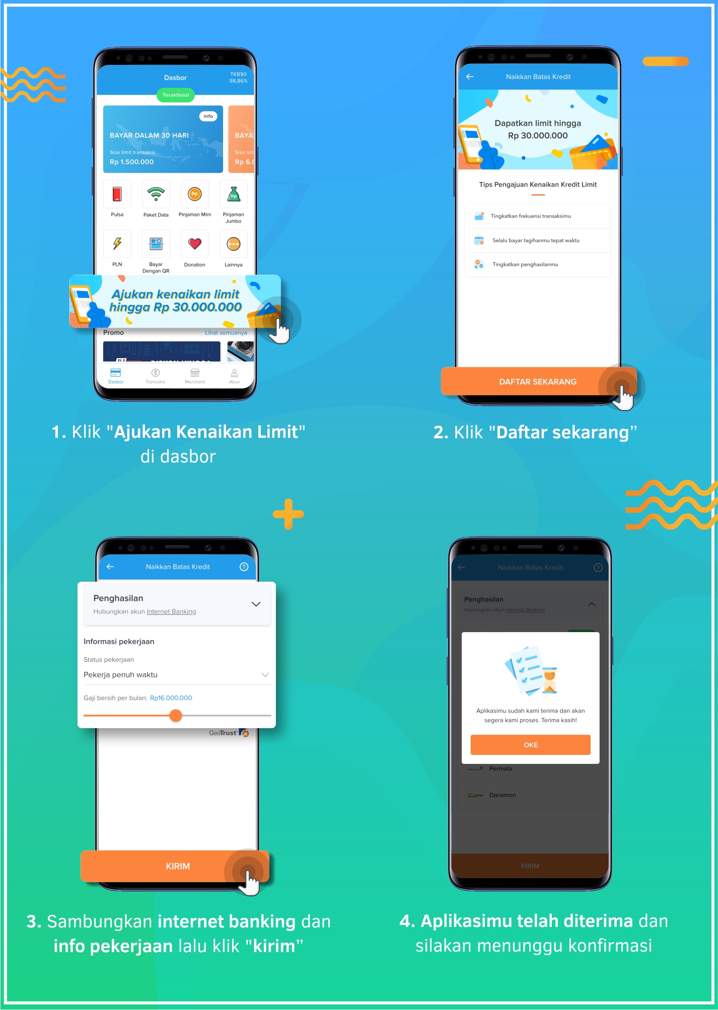 - Limit maksimal yang bisa didapatkan sebesar Rp30.000.000.